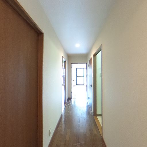室内奥からの採光が期待できる(確度82%):廊下の先に明るい開口部が見えており、玄関側まで自然光がある程度届いているように見える。