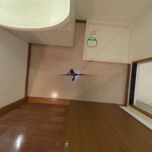 洗濯機置き場が室内にある(確度96%):床面に防水パンと給水栓が確認でき、室内洗濯機置き場が確保されている。
