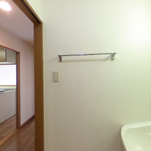 タオル掛けが設置されている(確度91%):洗面台脇の壁面にタオルバーが取り付けられている。