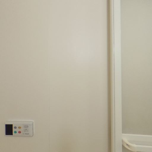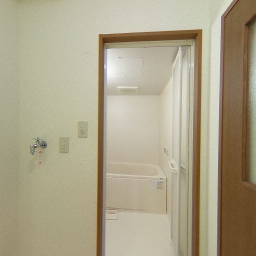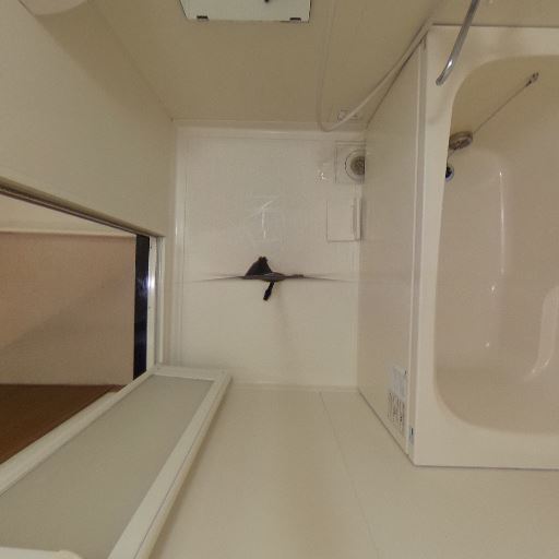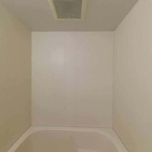 浴室乾燥・換気設備がありそう(確度78%):天井に換気口が見え、浴室入口付近には操作パネルらしき機器も確認できるため、換気または浴室乾燥機能付きの可能性がある。