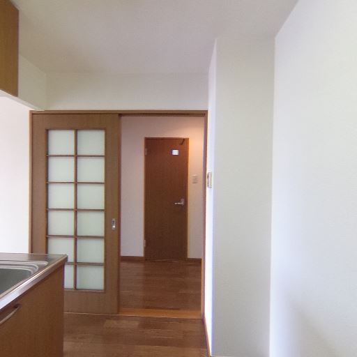 内装は比較的シンプルで清潔感がある(確度77%):白系の壁紙と木目建具で統一されており、目立つ汚れや大きな傷は画像上では確認しにくい。