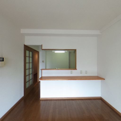 カウンター越しのキッチンで空間に開放感がある(確度89%):居室側にカウンターと開口があり、キッチンと部屋が完全に分断されていないため、視線の抜けがある。