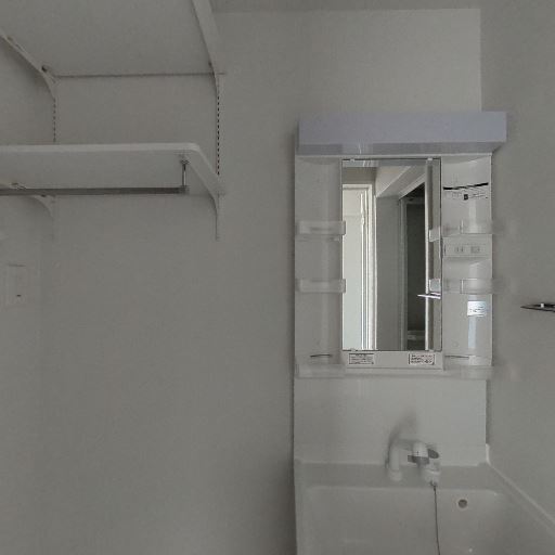 収納棚・ハンガーパイプ(確度78%):可動棚とハンガーパイプがあり、タオルや洗剤の収納に使えそう。