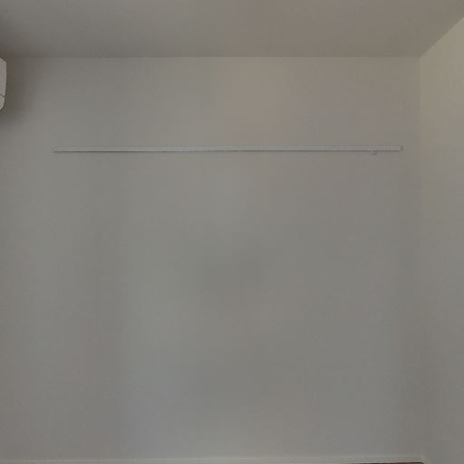 室内物干しレール(確度80%):壁面に長いレールが取り付けられており、フックを掛けて物干し等に使えそう。