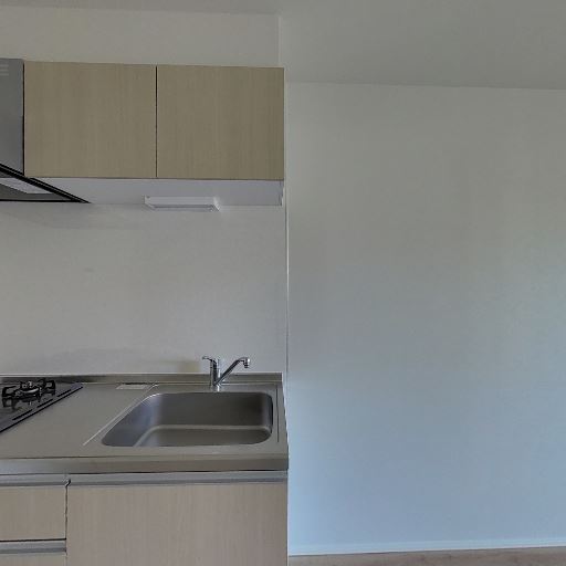 キッチンの設備と通路幅(確度78%):1口ガスコンロとシンクのシンプルなキッチン。通路型でやや奥行きが長く、作業スペースは限られそう。
