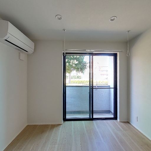 エアコン設置済み(確度95%):室内に壁掛けエアコンが設置されている。
