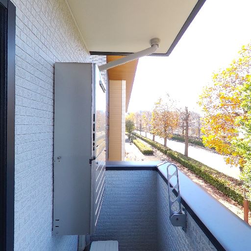 設備の状態(確度64%):バルコニーにエアコン室外機が設置済み。手すりや外壁は目立つ錆や割れは見当たらない。