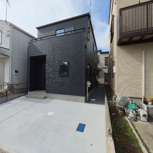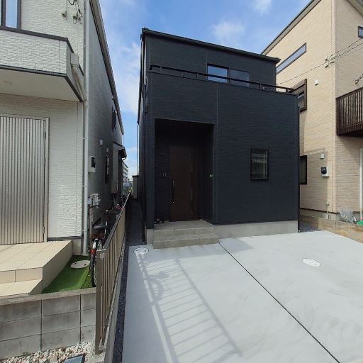 外観と築年の印象(確度73%):ダークトーン外壁で直線的な意匠。サッシや外壁が新しめに見え、築浅または新築の可能性が高い。