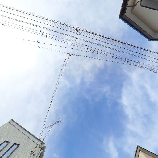 電線・電柱の位置(確度70%):家の前の道路沿いに電線・電柱があり、空がやや込み入って見える。車の出入りや景観に影響の可能性。
