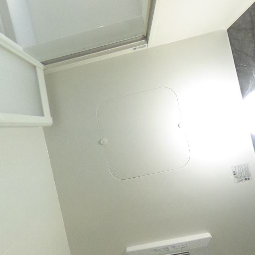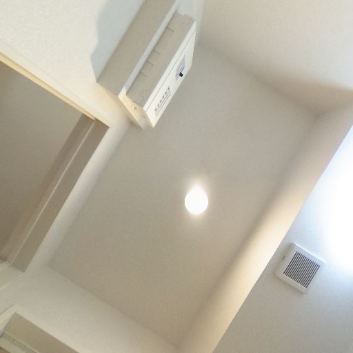 換気設備と天井照明(確度73%):天井にダウンライトと換気口が確認でき、明るさと換気に配慮されている。