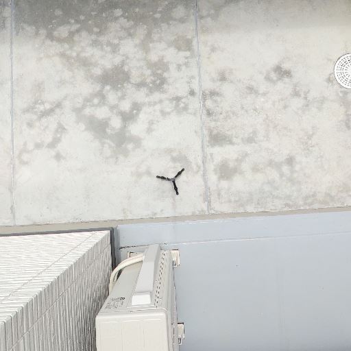 • 壁面に室内物干し用と思われる金具がある(確度73%):中央の壁面上部に横長のレール状部材、左右に操作部材のようなものが見え、天井側にも器具があるため、室内干し設備またはそれに準じる設備がある可能性が高い。