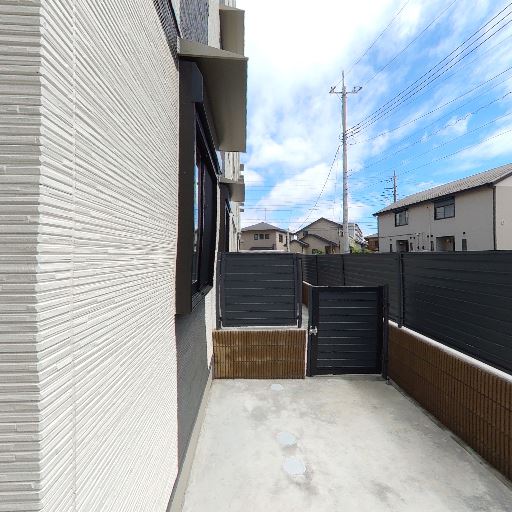• 屋外スペースは細長く実用的(確度84%):コンクリート敷きの専用庭またはテラス状スペースが建物沿いに細長く確保されており、通路・物置き・簡単な屋外作業に使いやすそうである。