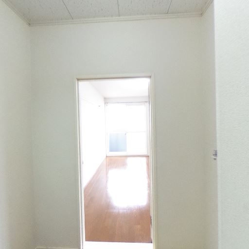 居室の採光(確度72%):廊下奥の居室に大きめの窓があり、床に光の反射が見えることから日中の明るさが期待できる。