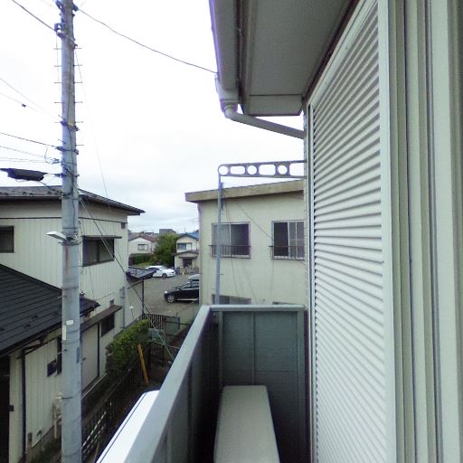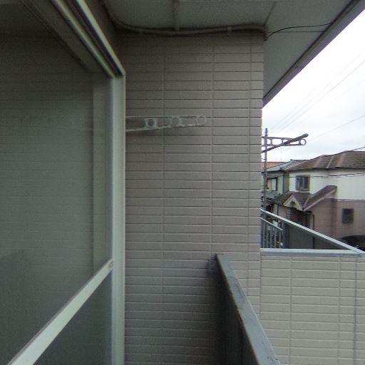物干し設備(確度86%):壁付けの物干し金物が設置済みで、洗濯物を干す想定のバルコニー。