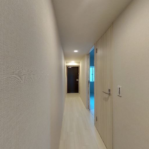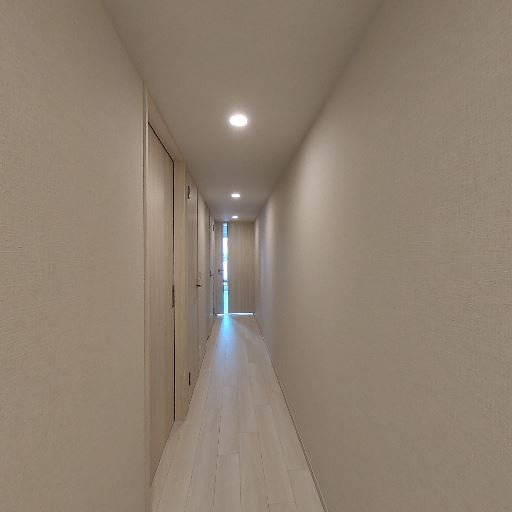 • 自然光の入り(確度63%):廊下の先に採光のある居室が見え、ドア下部や側面から光が差し込んでいる。