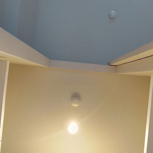 • 天井設備(火災報知機等)が設置済み(確度81%):天井中央付近にセンサー類が2点見える。