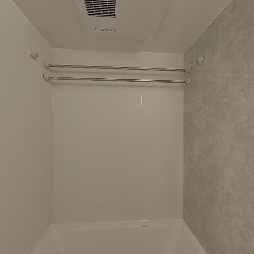 • 浴室乾燥・換気設備(確度90%):天井に浴室乾燥機と思われる換気ユニットがあり、物干しポールも2本設置されている。