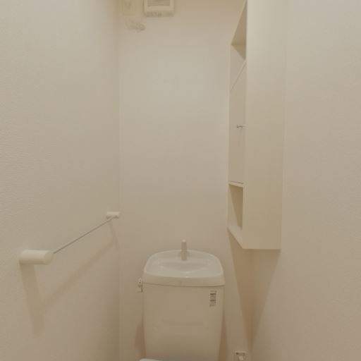 収納と棚の存在(確度78%):便器横に埋め込み型の収納棚があり、トイレ用品をしまえる。