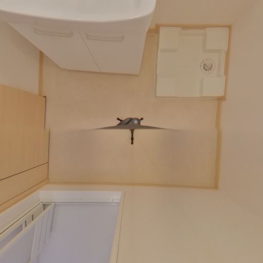 洗濯機置き場あり(確度87%):床面に防水パンと排水口がある。給水栓も確認できる。