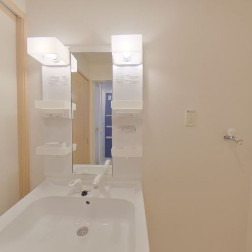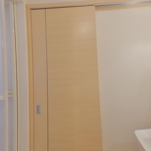 収納スペースの可能性(確度62%):引き戸のクローゼットもしくは物入れが洗面室内にあるように見える。