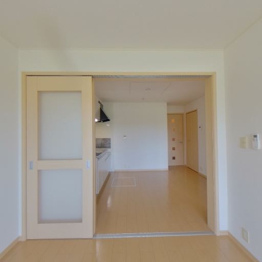 可動間仕切りでレイアウト柔軟(確度78%):リビングと隣室が引き戸で仕切られており、開ければ広い一体空間になる。