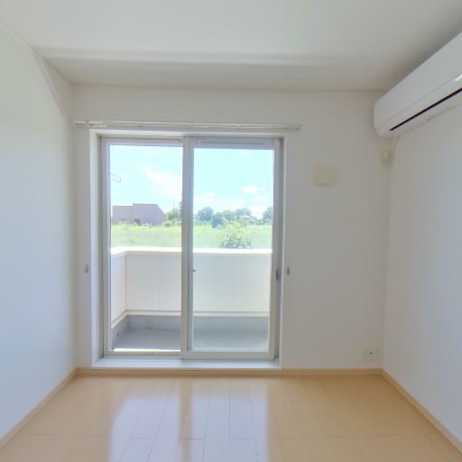 エアコン設置済み(確度95%):室内上部に壁掛けエアコンが確認できる。