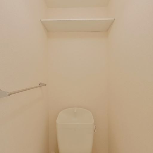 収納棚あり(確度86%):便器上部に一段のオープン棚が設置されている。