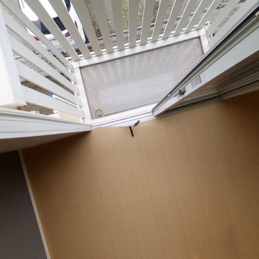 採光と窓(確度80%):大きな引き違い窓から外光が入り、室内は明るい印象。網戸も確認できる。