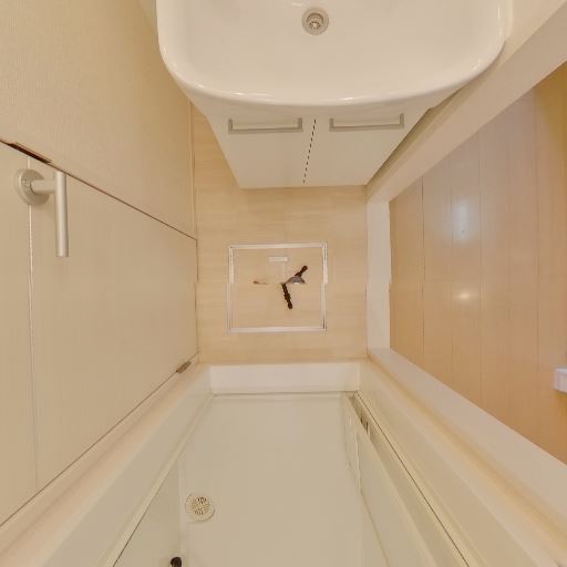 浴室と洗面の新しさ(確度74%):浴室のパネル・浴槽、洗面ボウルが清潔で劣化が少なく見える。