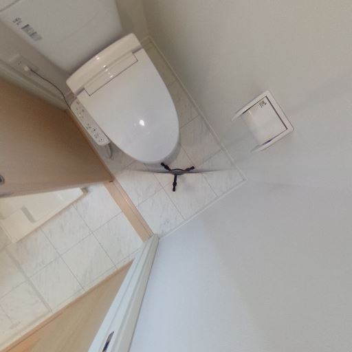 • トイレットペーパーホルダーとタオルリング設置(確度80%):壁にタオルリング、便器横にペーパーホルダーが確認できる。