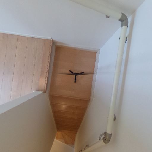 • 天井高と開放感(確度70%):上部が勾配天井になっており、一般的な階段よりも空間に高さがある。