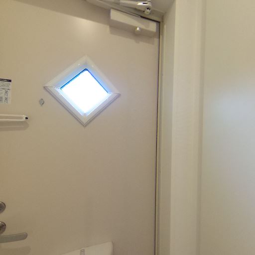 • 玄関ドアに採光窓(確度76%):玄関ドアに小さなダイヤ型の窓があり、外光を取り込める。