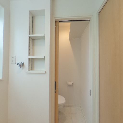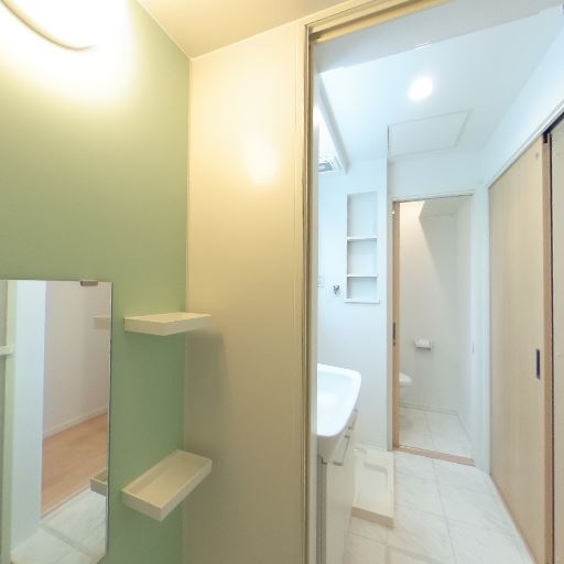 • 収納ニッチ・棚の有無(確度80%):洗面所壁面に可動棚のニッチがあり、小物収納が可能。