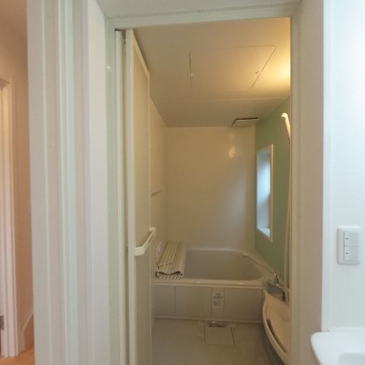• 水回りの設備充実(確度73%):独立洗面台、浴室乾燥用の換気口、追い焚き等のリモコンらしきパネルが見える。