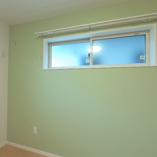 • 個室の採光と内装(確度78%):小窓と淡いグリーンのアクセントクロスのある個室が見える。天井照明も設置済み。