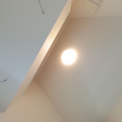 • 勾配天井とダウンライト(確度78%):天井は勾配があり、埋め込み照明が設置されている。