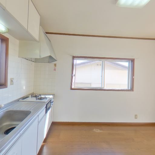• キッチン設備と状態(確度78%):シンク一体のカウンター、2口ガスコンロ、換気フード付き。天板や扉は比較的きれいで、使用感は軽微に見える。
