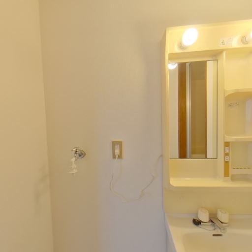 • 独立洗面台と収納付き(確度83%):鏡面収納一体型の独立洗面台が設置されており、小物の収納スペースがある。