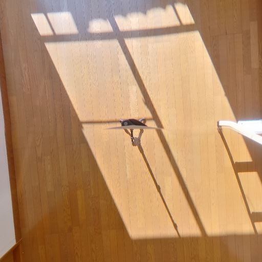 • 採光の良さ(確度90%):大きめの掃き出し窓と高窓から日射がしっかり入り、床に強い日差しが落ちている。