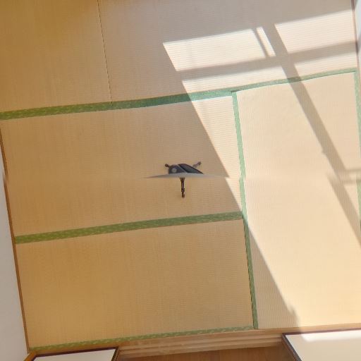 • 和室(畳)である(確度95%):床が畳になっており、縁のある畳目が確認できる。