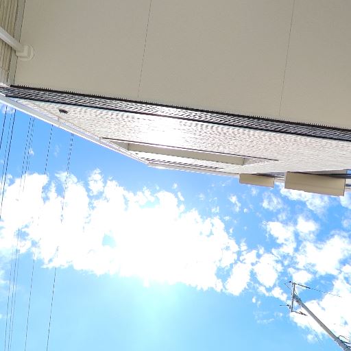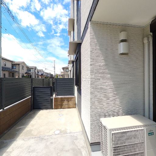 • 庭またはテラス状の屋外スペースがある(確度88%):窓の外に囲い付きの舗装されたスペースが見え、洗濯物干しやちょっとした外利用がしやすそうな屋外空間がある。