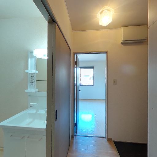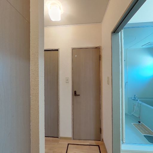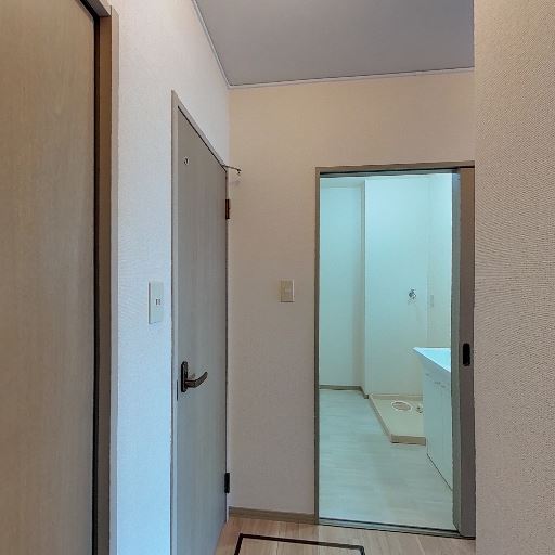 • 玄関から水回りへの動線がまとまっている(確度84%):玄関付近から室内ドアを通って洗面・脱衣スペースらしき場所へつながっており、生活動線は比較的シンプルに見える。