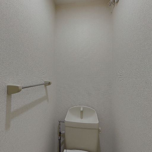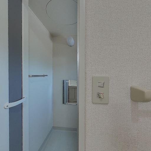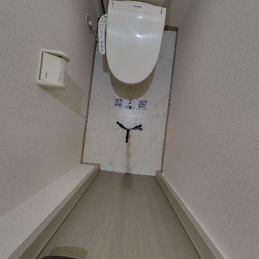 • 手すりとペーパーホルダーがあり基本機能は揃っている(確度89%):左壁面に手すり、床側画像の左壁にペーパーホルダーが確認でき、トイレとして必要な設備は一通り整っている。