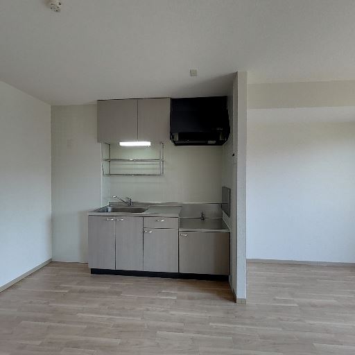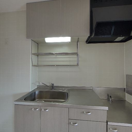 • レンジフード付きで換気面は安心感がある(確度86%):コンロ上部にレンジフードが設置されており、キッチンの換気設備は備わっている。