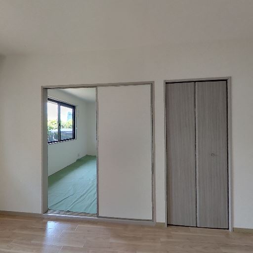 • 隣室または続き間とつながる引き戸がある(確度86%):開口部の先に別のフローリング空間が見えており、引き戸で部屋同士を仕切る構成と考えられる。空間を柔軟に使いやすそう。
