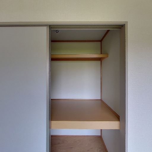 • 押入れ収納が大きい(確度92%):前面に天袋付きの押入れがあり、上下2段で奥行きもあるため、寝具や季節物をまとめて収納しやすそうである。
