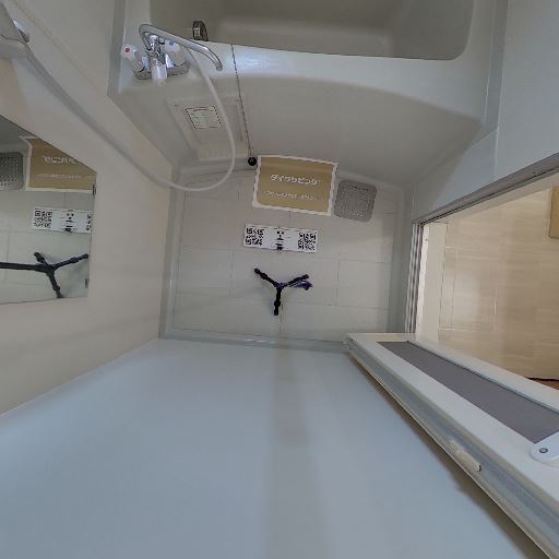 • 浴室乾燥・換気設備がある(確度95%):天井面に換気扇が確認でき、入口付近には浴室リモコンも見えるため、換気設備が備わっている。