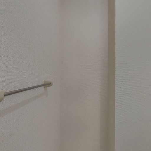 • 壁面に物干し金物または長押状の設備がある(確度58%):壁上部に細長い水平部材が設置されており、室内物干し用の受けや簡易的な設置レールの可能性がある。