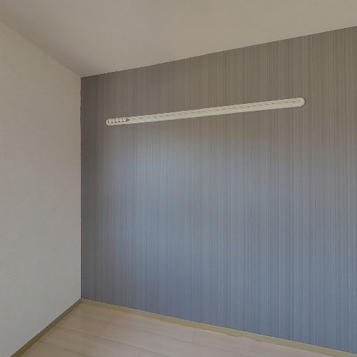 • 室内物干し用の金具が設置されている可能性(確度71%):アクセントクロス面の上部に長尺の受け部材があり、天井にも器具が見えるため、室内物干し設備または関連金具が備わっている可能性がある。