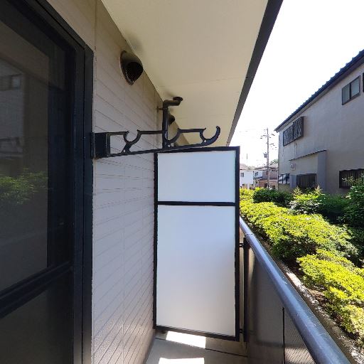 • バルコニーに物干し金具がある(確度95%):壁面に物干し用の金具が設置されており、バルコニーで洗濯物を干せる設備が確認できる。